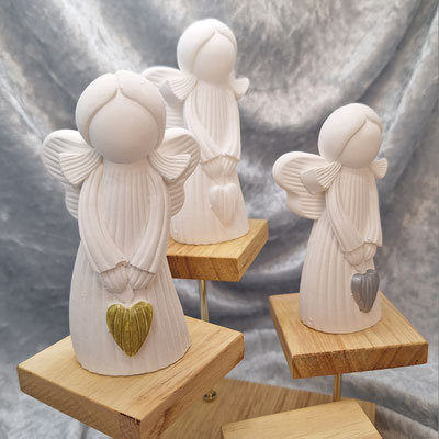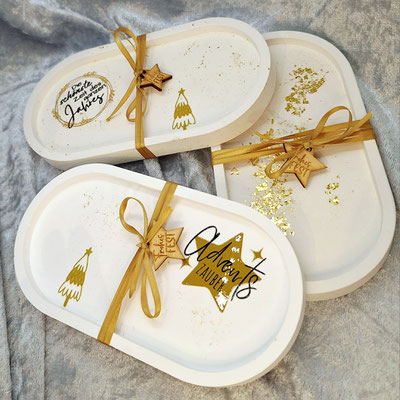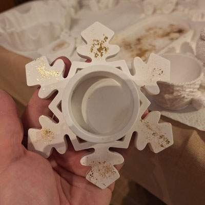 Es ist immer ein spannender Augenblick, wenn ich die Gießlinge aus der Form nehme. Vorab weiß man nie, wie das Endergebnis aussehen wird – jeder Guss hält eine neue Überraschung bereit: Helle Reflexe, feine Linien, vielleicht ein Muster, das so wirkt, als hätte das Blattgold heimlich seine eigene Geschichte erzählt.